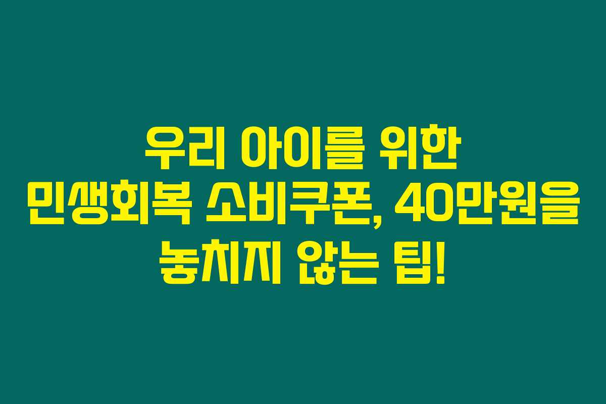 제가 직접 체크해본 바로는 2025년 7월 민생회복 소비쿠폰을 통해 우리 아이에게 40만원의 소중한 지원금을 받을 수 있는 기회가 있답니다! 하지만 신청 방법과 주의사항을 잘 알아두지 않으면 기회를 놓칠 수 있어요. 아래를 읽어보시면, 제가 경험한 꿀팁들을 통해 우리 아이의 소비쿠폰을 놓치지 않는 방법을 알아보실 수 있습니다!