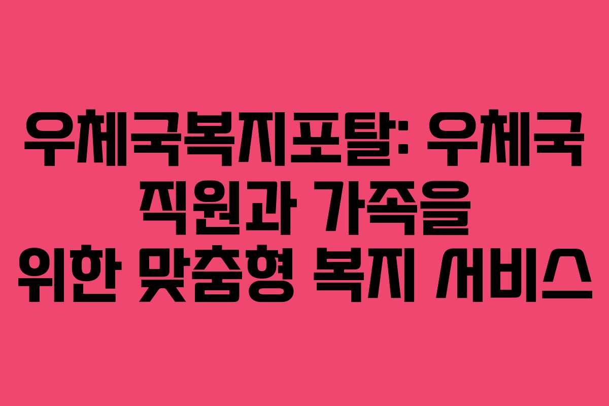 우체국복지포탈은 직원들의 삶의 질 향상과 업무 만족도를 높이는 데 기여하며, 다양한 복지 혜택을 통해 우체국 직원들의 복지 증진에 큰 역할을 하고 있습니다.