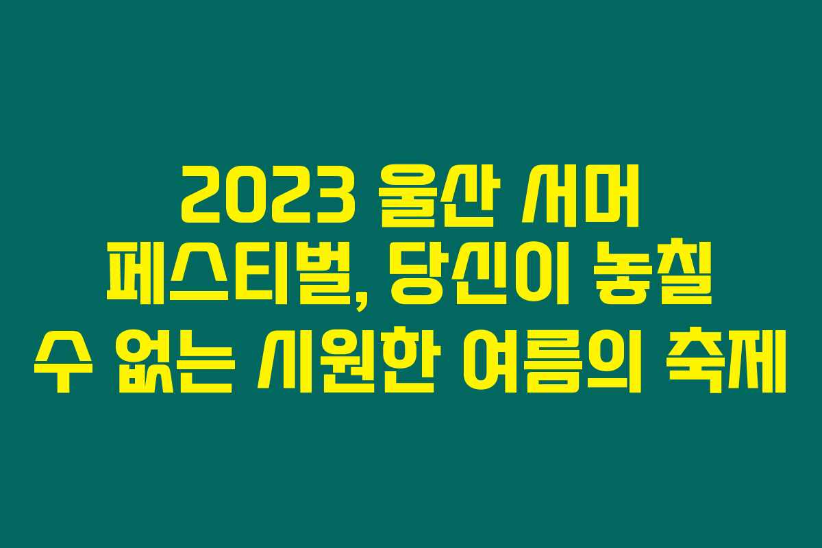 이번 2023 울산 서머 페스티벌은 여러분이 여름을 즐길 수 있는 최고의 시간이에요. 화려한 라인업과 다양한 이벤트가 여러분을 기다리고 있어요. 놓치지 말고 즐거운 시간 만들어 보세요! 😊