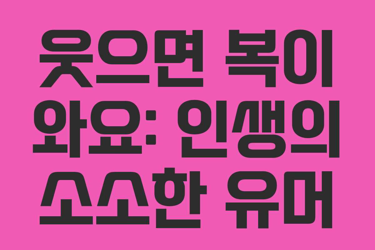 인생은 때때로 힘들고 고단하지만, 웃음은 우리의 마음을 부드럽게 해줍니다. ‘웃으면 복이 와요’는 그러한 유머와 긍정적인 메시지를 담고 있는 주제입니다. 이번 글에서는 웃음의 중요성과 그로 인해 우리 삶에 가져오는 긍정적인 영향을 살펴보겠습니다.