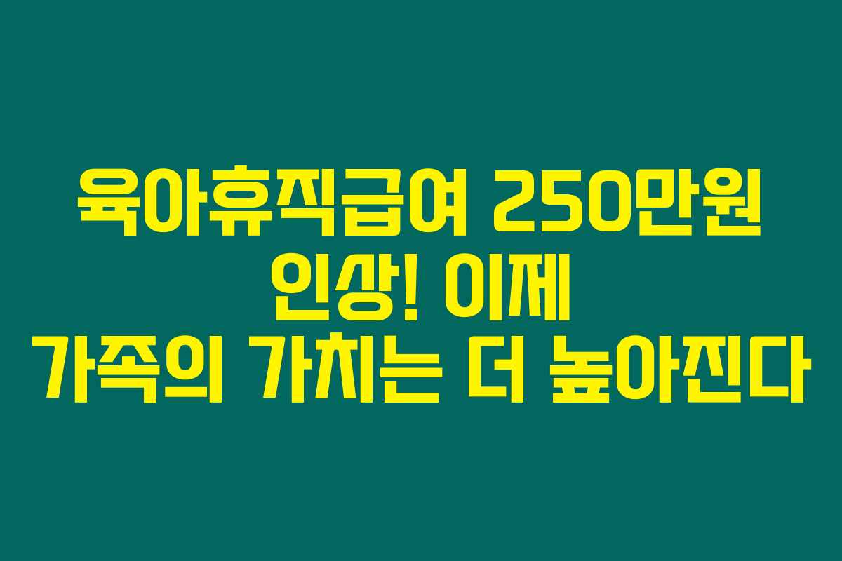제가 직접 경험해본 바로는 최근 육아휴직급여가 250만원으로 인상될 예정인데, 이는 많은 가정에 긍정적인 변화를 가져올 것으로 보입니다. 많은 부모들이 육아휴직을 통해 가족과의 소중한 시간을 보낼 수 있도록 도와주는 이 제도에 대해 자세히 알아보겠습니다.