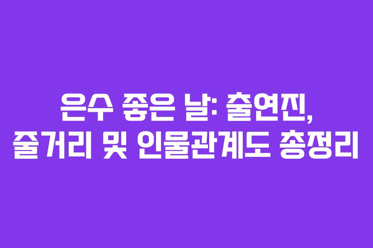 2025년 9월 20일에 첫 방송될 KBS 2TV 주말드라마 ‘은수 좋은 날’은 한 평범한 주부가 가족을 지키기 위해 극한 상황에서 맞서는 과정을 담은 스릴러 휴먼 드라마입니다. 강은수(이영애 분)는 우연히 마약 사건과 범죄 조직에 얽히게 되면서 인간의 본성과 윤리적 갈등을 경험하게 됩니다.