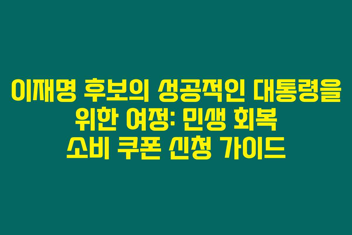 이재명 후보의 성공적인 대통령을 위한 여정: 민생 회복 소비 쿠폰 신청 가이드