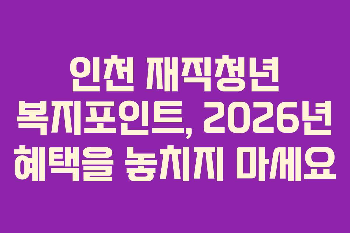 인천에서 직장 생활을 하며 재정적 어려움을 겪고 있는 청년들에게는 반가운 소식이 있습니다. 인천광역시에서 제공하는 ‘인천 재직청년 복지포인트’ 제도를 통해 연 최대 60만 원의 혜택을 받을 수 있는 기회가 주어지기 때문입니다. 이 제도는 중소기업에서 근무하는 청년들의 복지를 증진하고 장기근속을 유도하기 위해 마련된 것입니다. 오늘은 2026년 기준으로 이 혜택을 어떻게 신청할 수 있는지, 그리고 주의해야 할 점들을 상세히 안내하겠습니다.