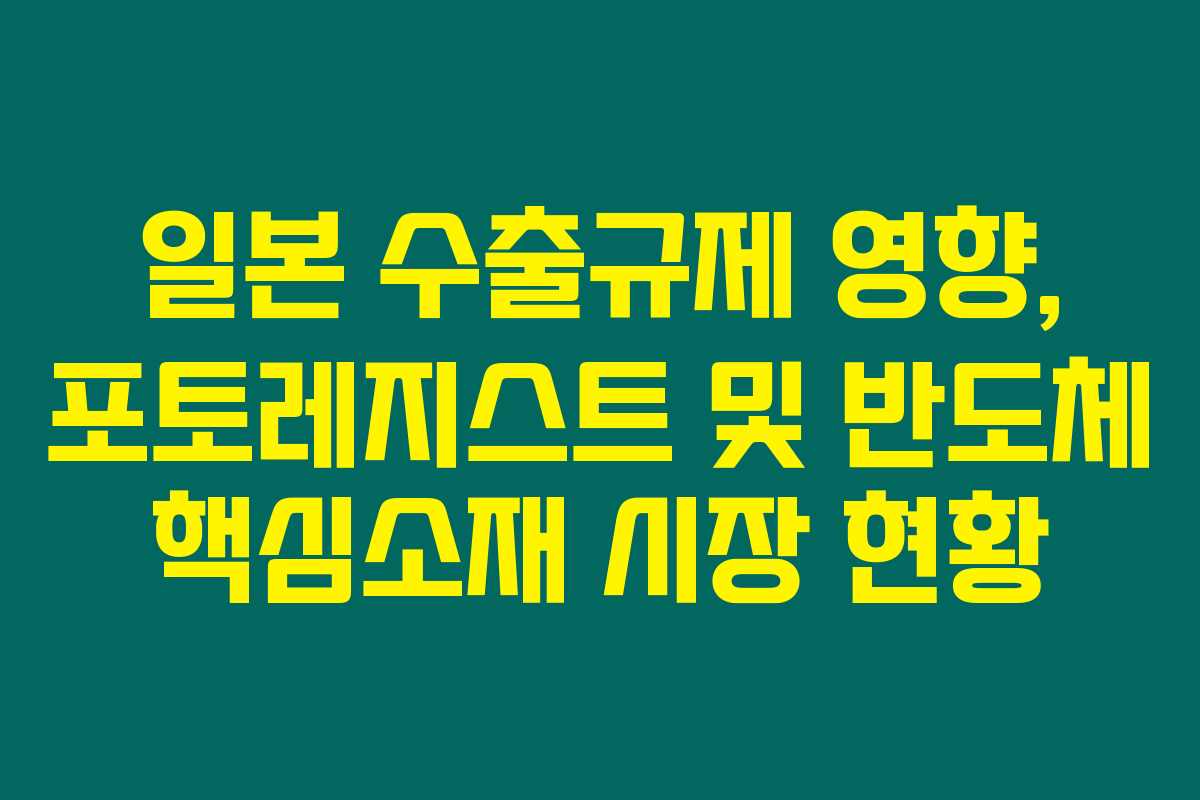일본의 수출규제가 반도체 산업과 관련된 포토레지스트 시장에 어떤 영향을 미쳤는지 궁금하지 않으신가요? 전 세계 반도체 시장에서 일본 소재 의존도가 얼마나 큰지, 그리고 이러한 변화 속에서 한국 기업들이 어떻게 대응하고 있는지 아래를 읽어보시면 훨씬 더 깊이 이해하실 수 있습니다.