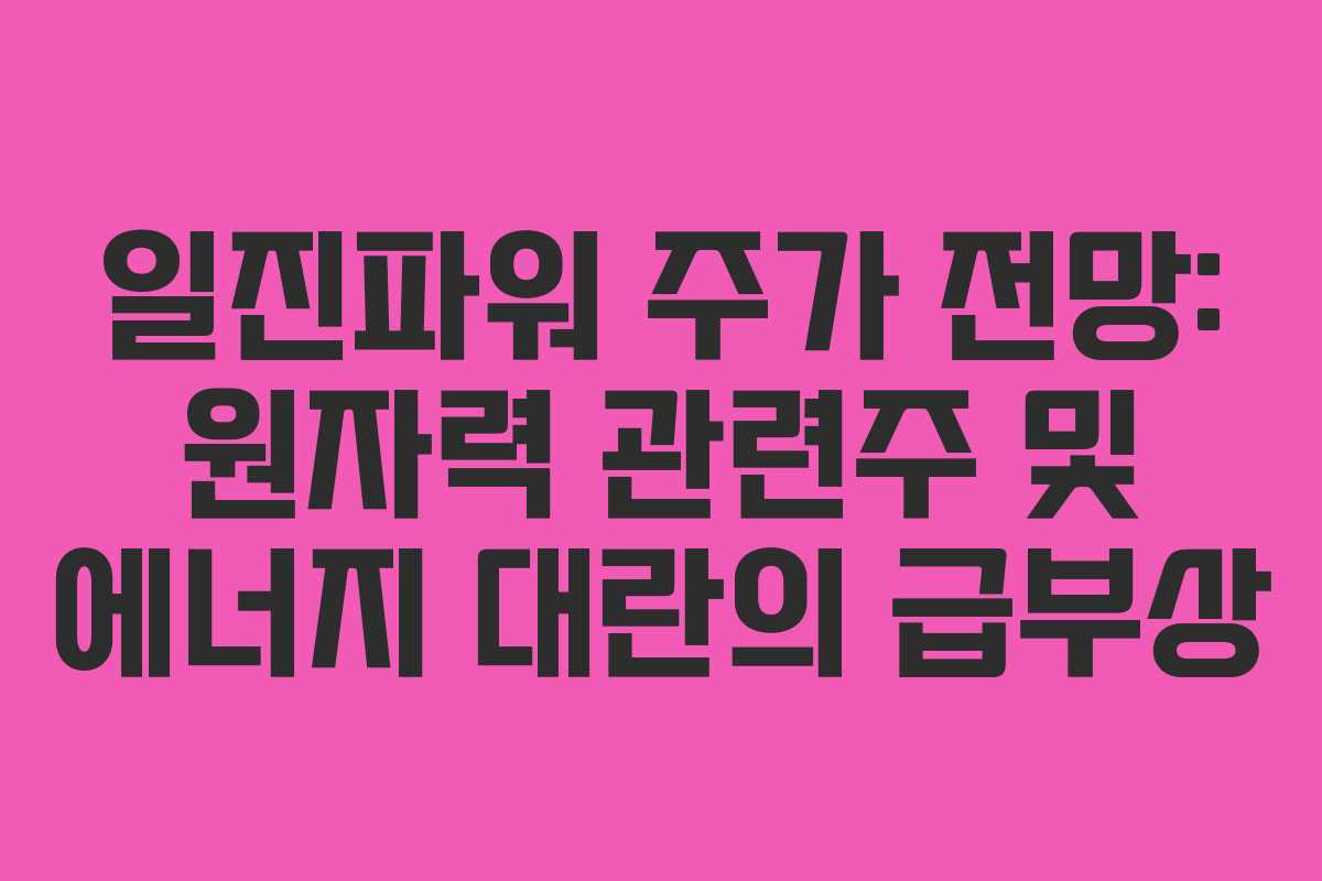 일진파워의 주가는 원자력 발전 정책, 국내외 원전 가동 상황, 에너지 수요 변화 등에 영향을 받습니다.