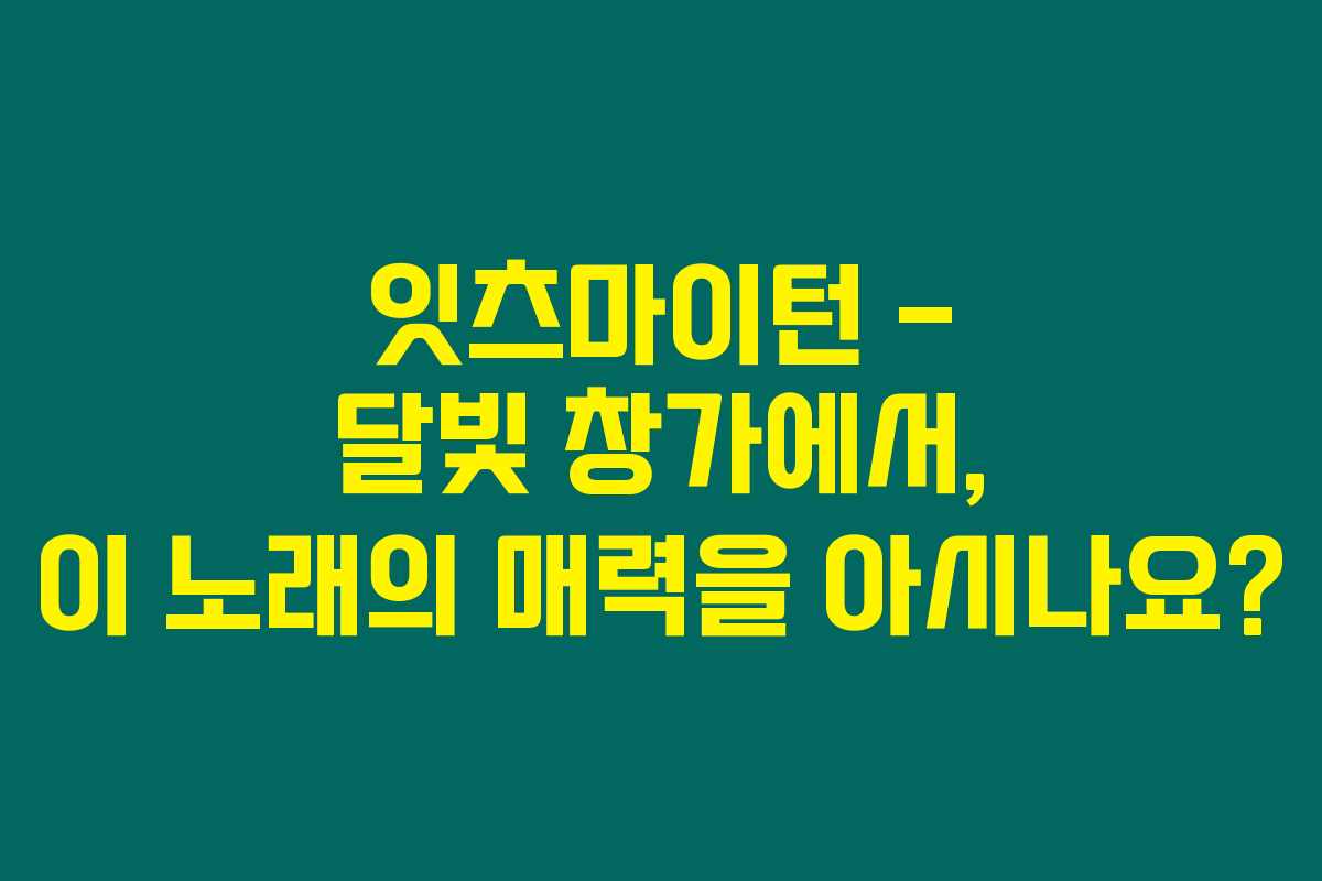 잇츠마이턴의 “달빛 창가에서”는 단순한 음악을 넘어서는 매력을 가진 곡이예요. 가사와 멜로디가 어우러져서 사랑의 감정을 보다 깊이 느끼게 해주며, 세대 간의 연결고리 역할을 해요. 이 곡을 듣기 위해서 한 번이라도 집중해보는 게 어떨까요? 여러분의 사랑도, 그리움도 그 안에서 느낄 수 있답니다.