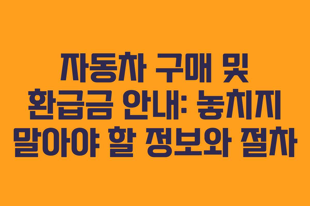 자동차 구매 및 환급금 안내: 놓치지 말아야 할 정보와 절차