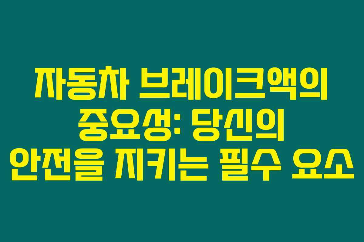 자동차는 안전하게 멈추는 것 또한 매우 중요합니다. 브레이크액을 제대로 관리하고 교환하는 것은 안전한 운전을 위한 필수적인 과정이에요. 이 정보를 바탕으로 여러분도 안전한 드라이브를 즐기길 바라요!