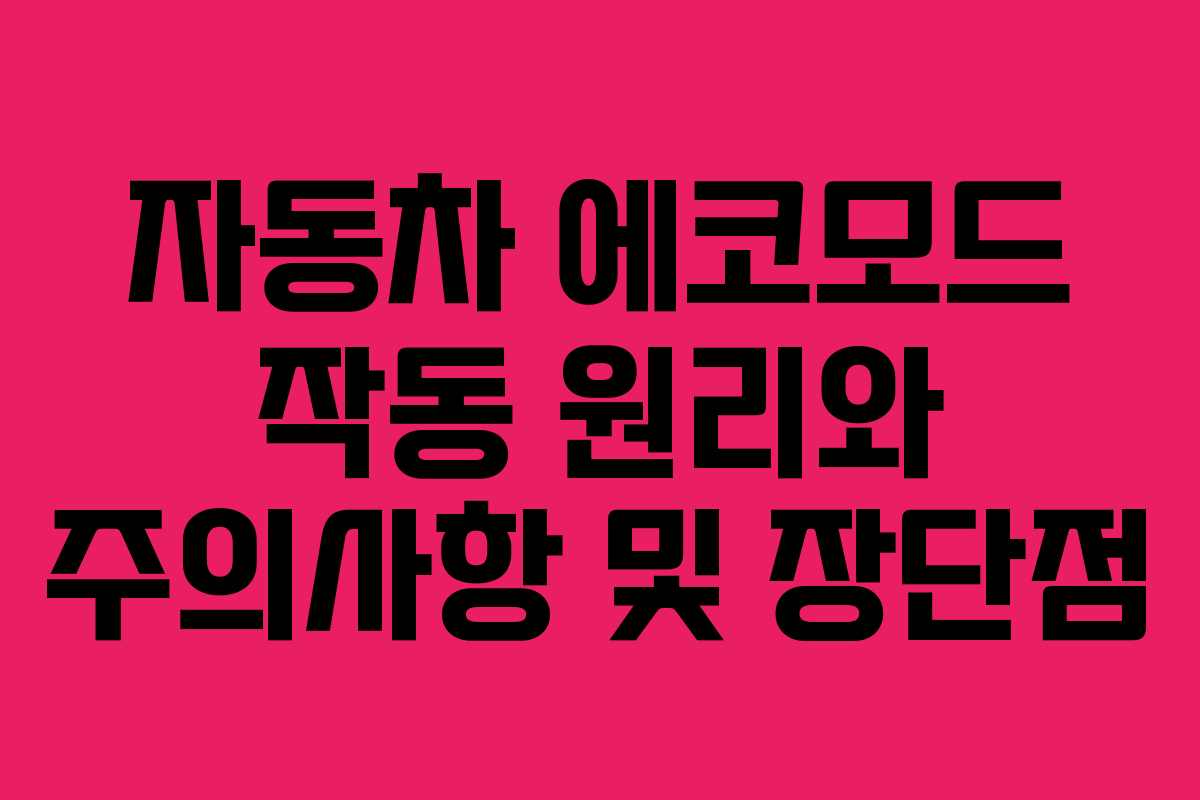 차량 모델에 따라 에코모드의 작동 방식이 다를 수 있으므로, 사용자 매뉴얼을 통해 확인하는 것이 좋습니다.