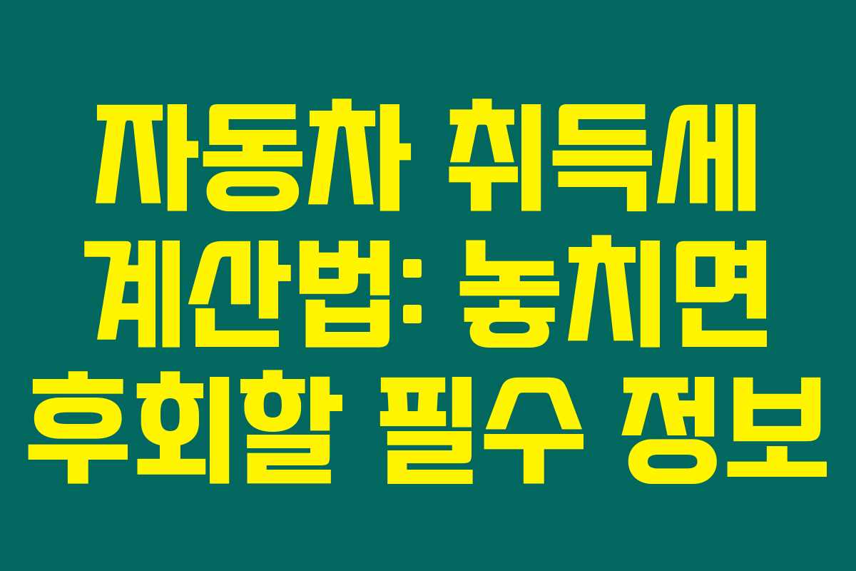 차량 구매를 고려하고 있나요? 차량 취득세를 어떻게 계산하는지 잘 아는 것이 중요합니다. 많은 사람들이 차량 구매 시 취득세를 간과하는데요, 이는 큰 비용이 될 수 있습니다. 아래를 읽어보시면 취득세 계산법과 면제 및 감면 조건을 정리해 놓았으니, 구매 전에 꼭 확인해 보세요.