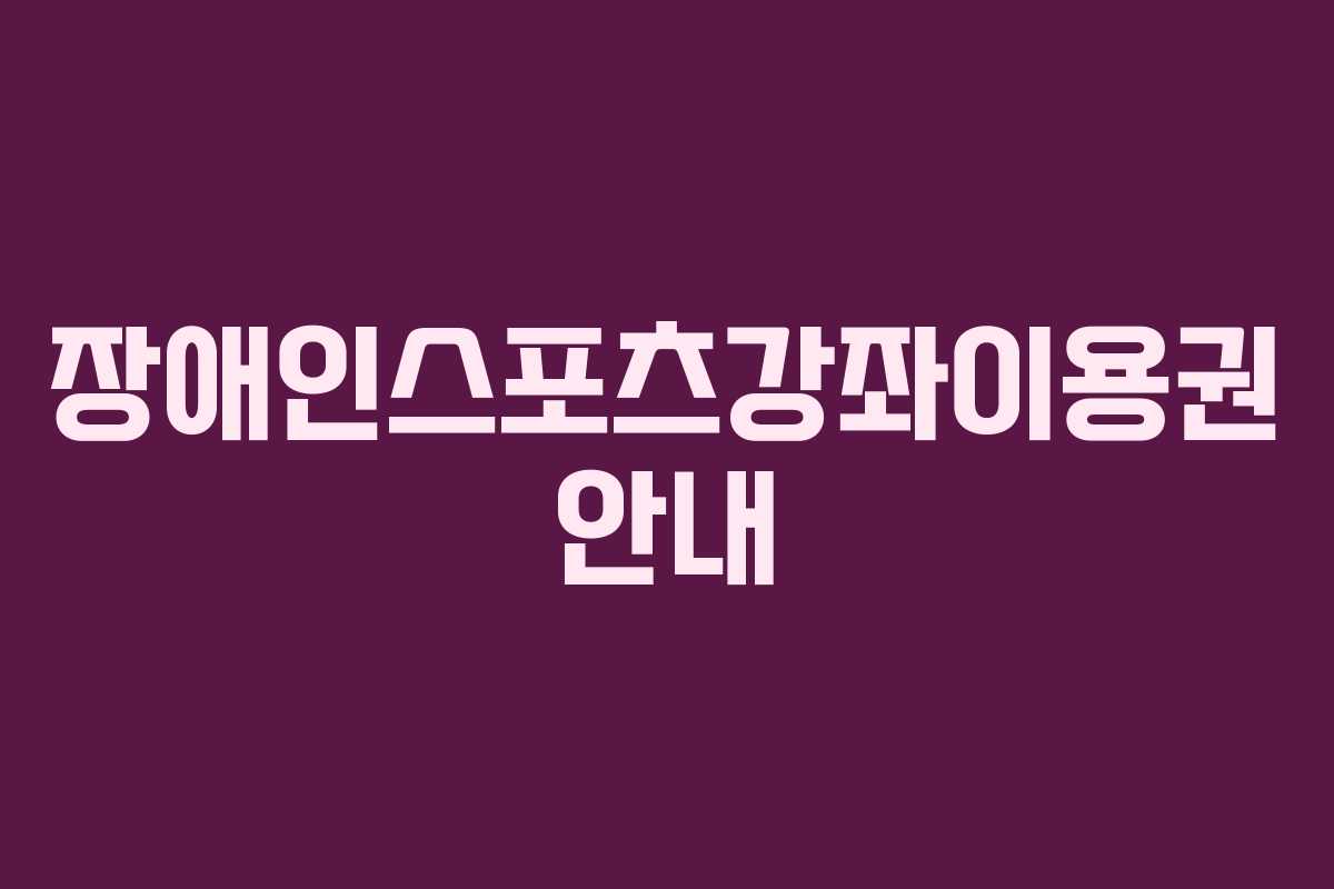 장애인스포츠강좌이용권은 취약계층 유·청소년의 여가활동을 지원하여 삶의 질을 향상시키고 스포츠복지 사회를 구현하는 데 기여하는 프로그램입니다. 이 제도는 장애인들이 다양한 스포츠 강좌를 이용할 수 있도록 도와줍니다.