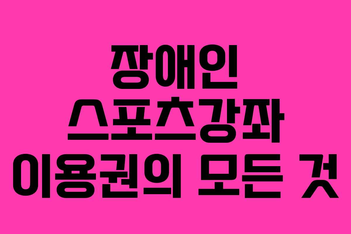 장애인 스포츠강좌 이용권은 장애인에게 스포츠 강좌 수강료를 지원하는 바우처 형태의 혜택입니다. 이번 글에서는 이 이용권의 특징, 신청 방법, 지원 내용을 자세히 살펴보겠습니다.