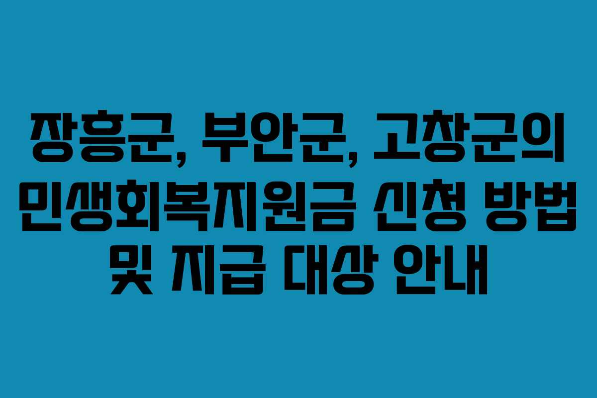 2026년 상반기를 앞두고 전라남도 장흥군과 전라북도 부안군, 고창군에서는 지역 주민들을 위한 민생회복지원금을 지급합니다. 이러한 지원금은 고물가 시대에 가계에 실질적인 도움이 되는 중요한 정책으로, 각 지역의 주민들에게 다양한 혜택을 제공하고 있습니다. 이번 글에서는 해당 지원금의 신청 방법과 지급 대상에 대해 상세히 설명하겠습니다.