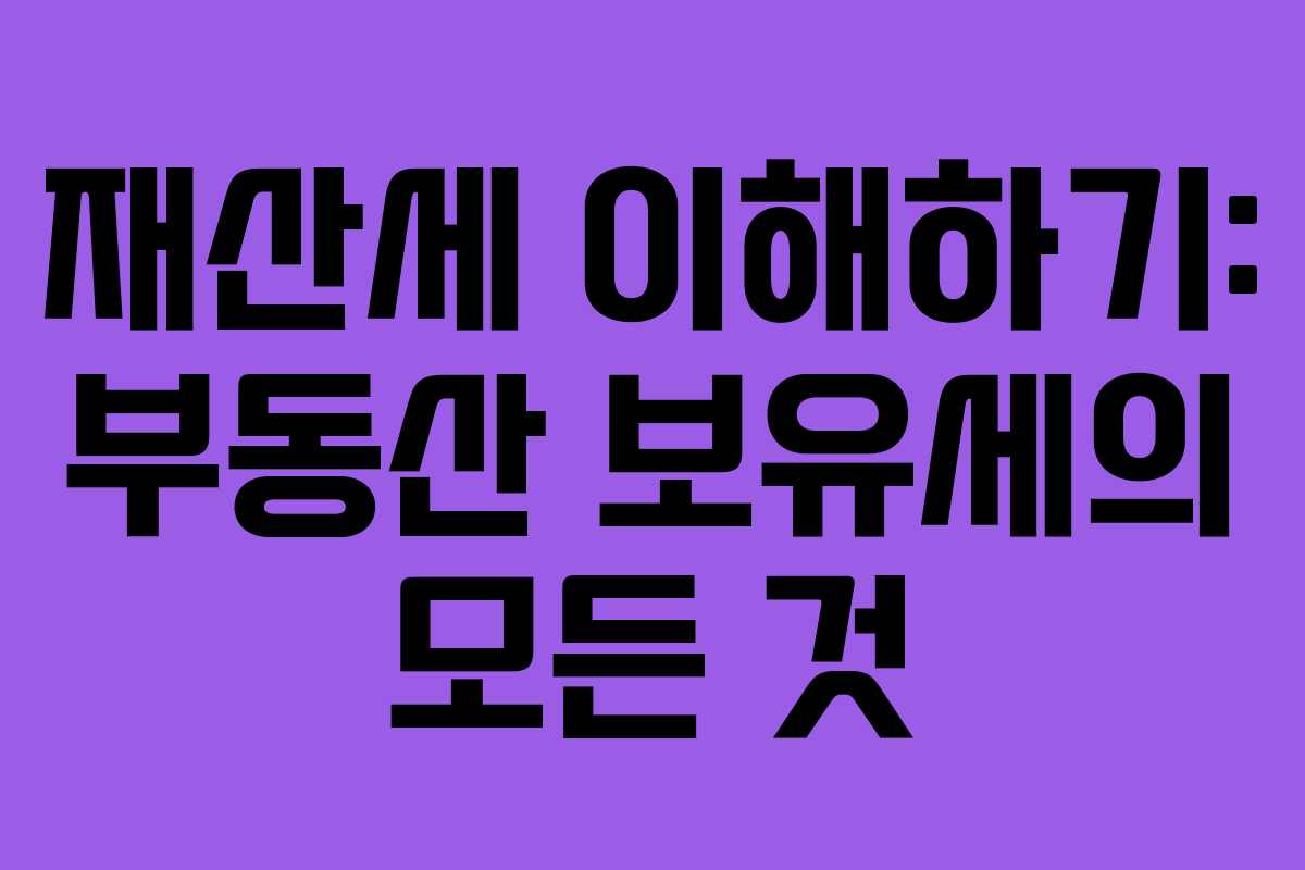 재산세 이해하기: 부동산 보유세의 모든 것