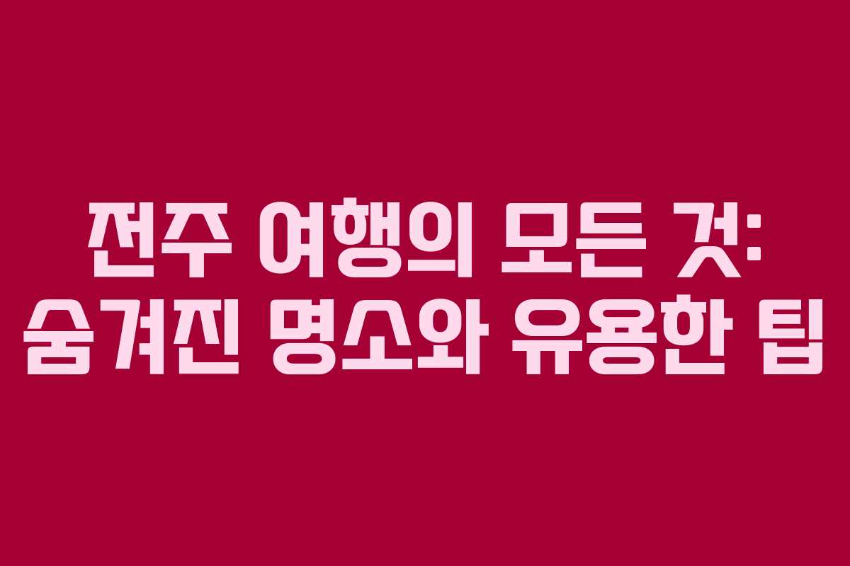 - 전주 필수 여행 코스와 숨은 명소 찾기