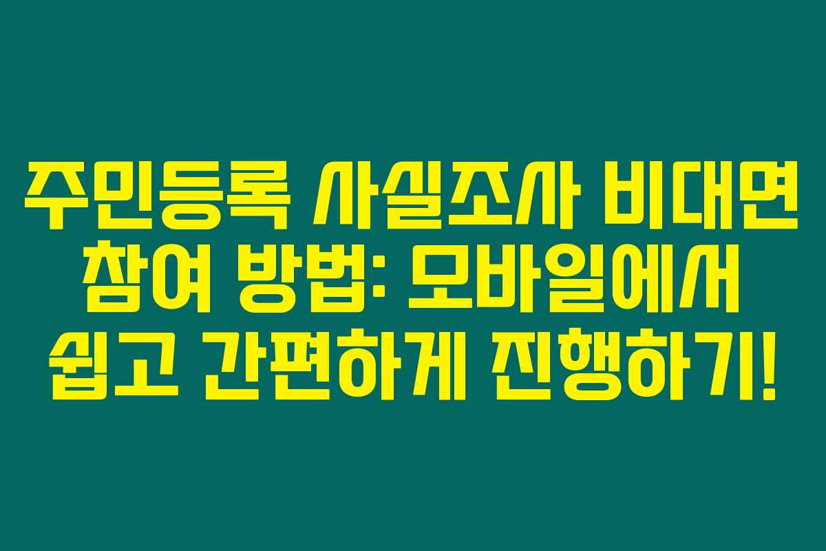 주민등록 사실조사 비대면 참여 방법: 모바일에서 쉽고 간편하게 진행하기!