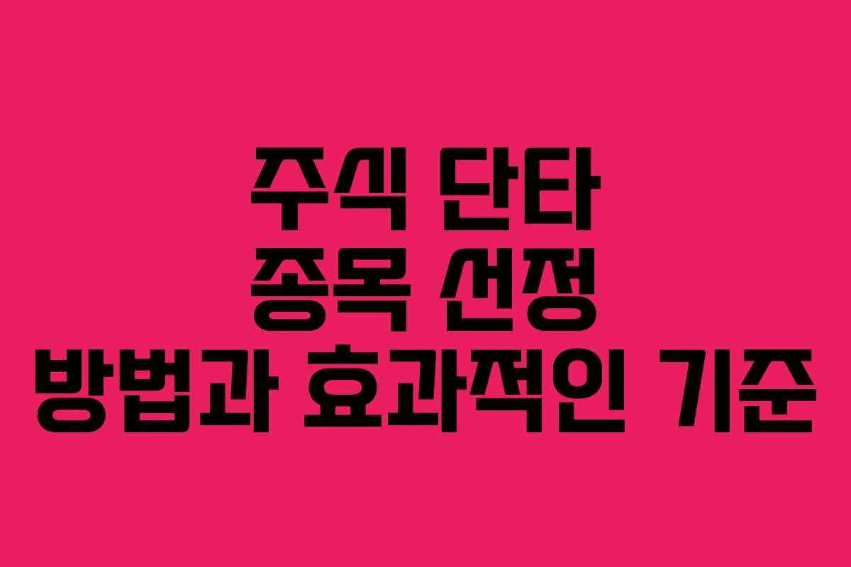 단타 매매에서 종목 선정은 성공과 실패를 가르는 중요한 요소입니다. 잘못된 종목 선택은 투자 손실로 이어질 수 있습니다. 따라서, 단타 종목을 선정하기 위해서는 시장 상황과 종목의 기본 정보를 확인하는 것이 필수적입니다. 이러한 기준을 통해 보다 신뢰할 수 있는 종목을 발굴할 수 있습니다.
