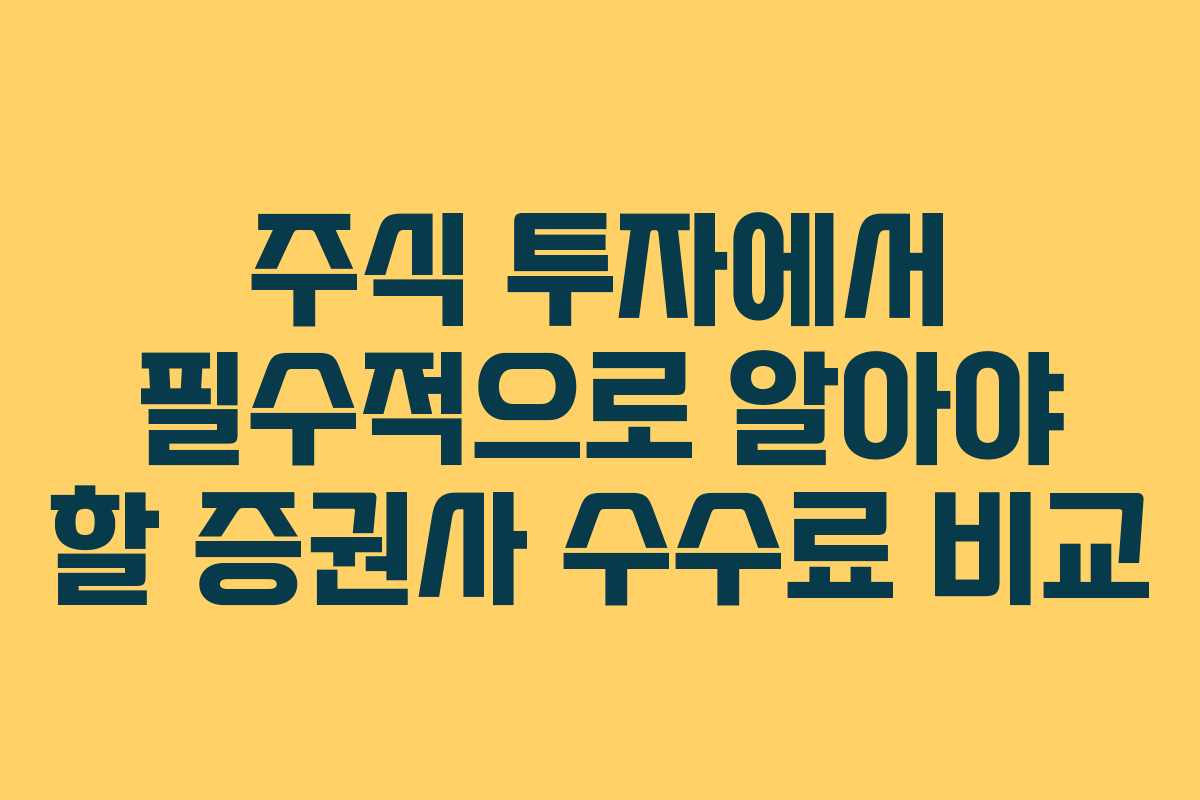 주식 투자에서 필수적으로 알아야 할 증권사 수수료 비교