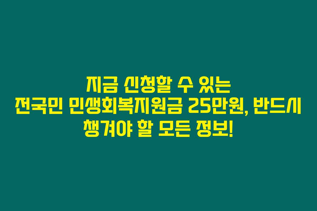 제가 직접 체크해본 바로는 전국민 민생회복지원금 25만원은 어려운 시기에 서민들의 가계에 큰 도움이 되는 보조금이에요. 이 지원금을 놓치지 않기 위해서는 해당 정보들을 잘 이해하고 대비하는 것이 중요하답니다. 아래를 읽어보시면 누구나 쉽게 신청할 수 있는 방법과 지급 조건, 사용처를 한눈에 파악할 수 있을 거예요! 😊