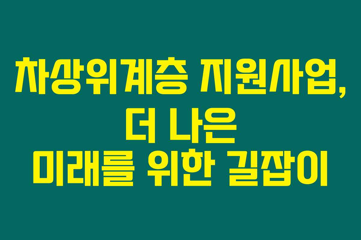 차상위계층 지원사업은 향후 더 나은 미래를 위해 필요한 지원책으로, 저소득층가정을 위한 핵심 지원입니다. 이러한 지원사업들을 통해 많은 분들이 더 안정된 생활을 이어갈 수 있기를 바라요. 또한, 앞으로도 이러한 사업들이 지속적으로 발전하기를 기대해봅니다.