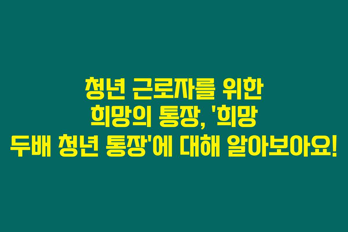 청년 근로자를 위한 희망의 통장, ‘희망 두배 청년 통장’에 대해 알아보아요!