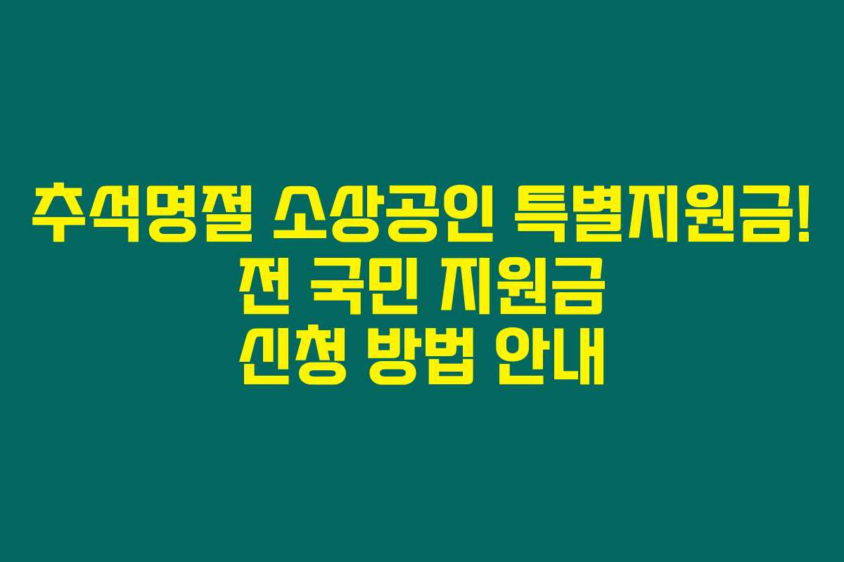 추석명절 소상공인 특별지원금은 농어촌 지역의 소상공인을 위한 재정 지원으로, 1인당 100만 원이 지급됩니다. 코로나19로 인한 경제적 어려움을 극복하기 위한 중요한 정책이지요.