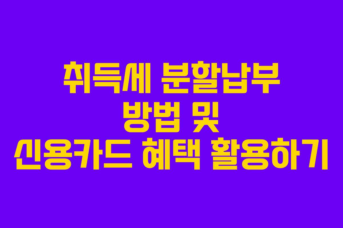 취득세는 부동산 거래 시 발생하는 세금으로, 상당한 금액이 발생할 수 있어 많은 이들이 부담을 느끼고 있습니다. 이번 글에서는 취득세 분할납부 방법과 신용카드를 활용하여 여러 혜택을 받을 수 있는 방법에 대해 알아보겠습니다.