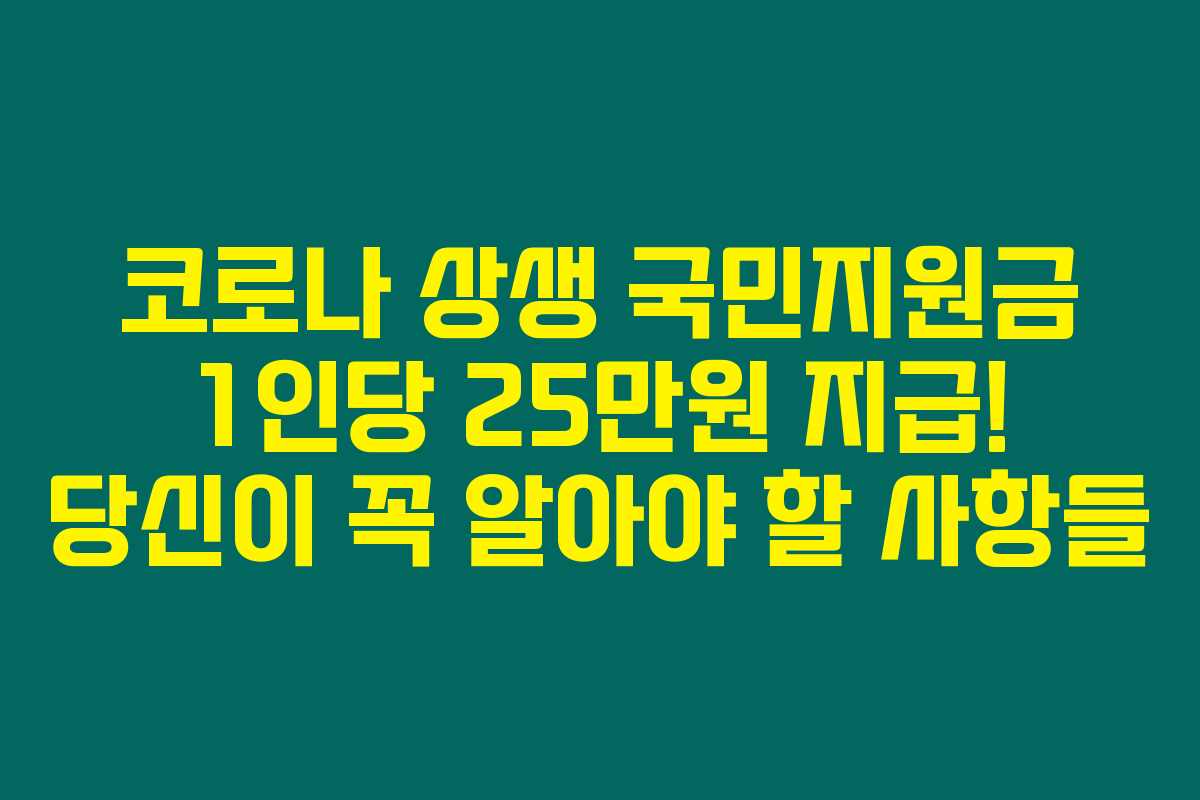 제가 직접 리서치한 바로는, 코로나 상생 국민지원금이란 1인당 25만원씩 지급되는 지원금으로, 정부의 다양한 코로나19 피해 지원 정책 중 하나입니다. 이 지원금은 전 국민의 88%에게 제공되며, 신청방법, 지급시기 및 사용처에 대한 정확한 정보는 많은 이들이 궁금해하는 핵심 사항일 것입니다. 아래를 읽어보시면, 코로나 상생 국민지원금에 대한 중요한 정보들을 자세히 알 수 있습니다.