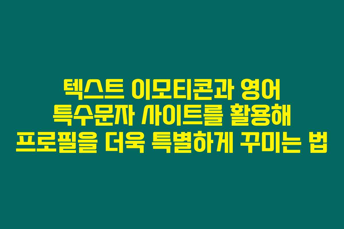 인스타그램이나 블로그 프로필 상태 메시지를 더욱 매력적으로 만들고 싶다면 텍스트 이모티콘과 영어 특수문자가 필수랍니다. 만약 이런 세련된 커스터마이징 방법을 찾고 있다면 아래를 읽어보시면 유용한 사이트를 안내해드릴게요. 이 사이트들은 누구나 쉽게 사용할 수 있으니 편하게 활용해 보세요!