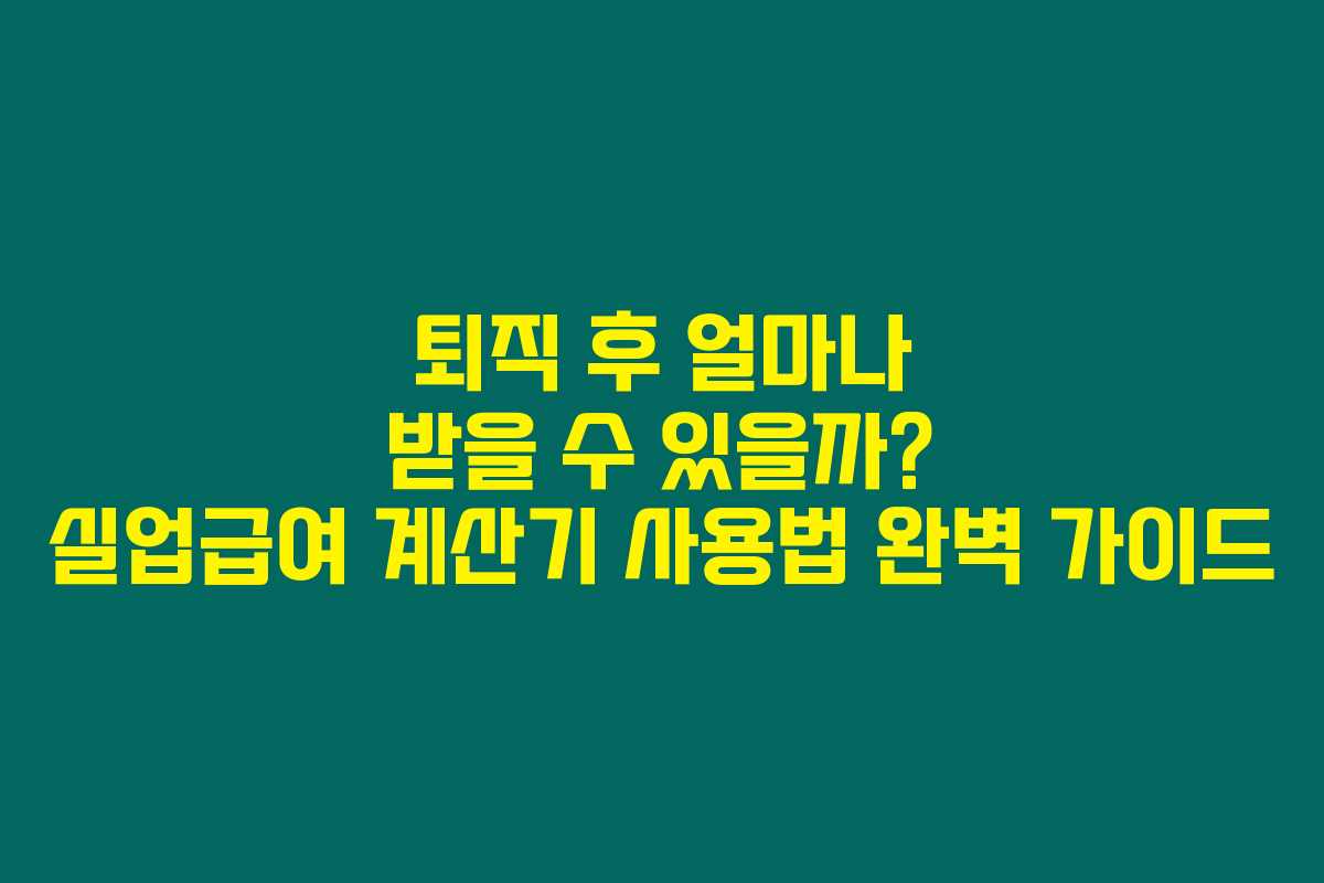실업급여는 일자리를 잃은 후 경제적 부담을 덜어주는 중요한 제도입니다. 하지만 실업급여를 받기 위해서는 여러 조건을 충족해야 하죠. 아래를 읽어보시면, 실업급여 계산기를 이용해 모의계산하는 상세한 방법과 유의사항에 대해 알아보실 수 있습니다.