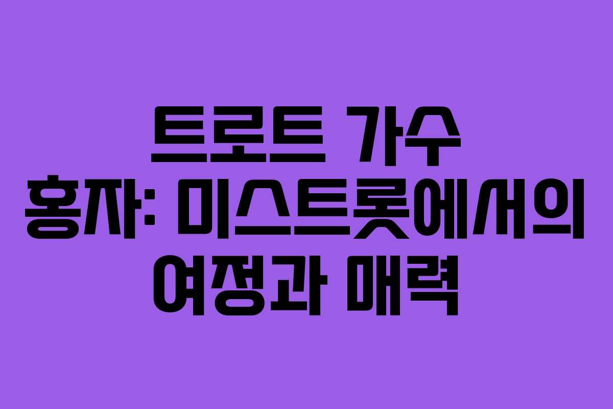 홍자는 대한민국의 트로트 가수로, 2012년 데뷔 이후 꾸준한 활동을 이어오고 있습니다. 그녀는 TV조선의 경연 프로그램 ‘미스트롯’에서 뛰어난 실력을 발휘하며 많은 사랑을 받았습니다. 이번 글에서는 홍자의 경력, 예명 유래, 그리고 음악 활동에 대해 자세히 살펴보겠습니다.