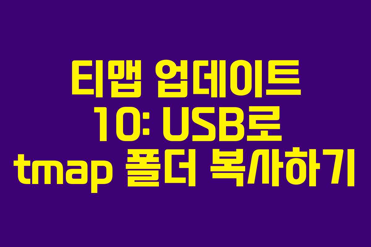 티맵 업데이트 10에서는 tmap 폴더를 USB에 복사하는 기능이 추가되었습니다. 이를 통해 티맵의 최신 버전을 손쉽게 저장하고 이동할 수 있습니다. 이 과정에서 USB의 용량은 약 9기가가 필요하다는 점을 유의해야 합니다.