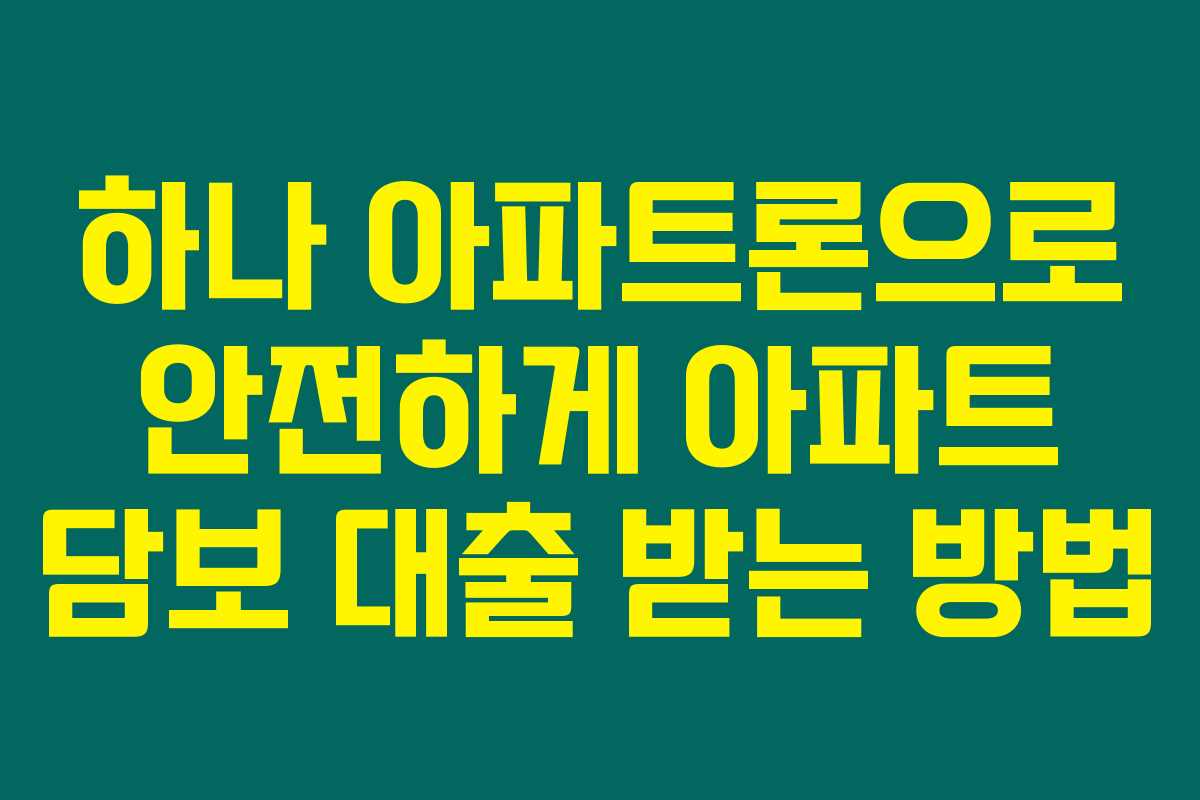 하나 아파트론 아파트 담보 대출의 기본 이해