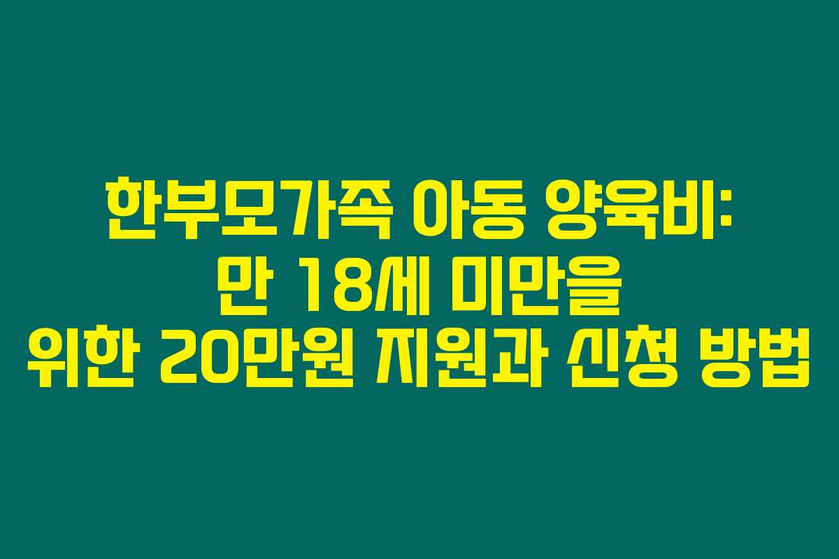 제가 직접 리서치한 바로는, 한부모가족을 위한 아동 양육비가 매우 중요한 제도라는 것을 알게 되었어요. 만 18세 미만의 아동에게 월 20만원이 지원된다는 사실, 정말 고맙게도 정부가 이렇게 많은 혜택을 제공하고 있답니다. 아래를 읽어보시면, 이 지원의 내용과 신청 방법에 대해 더 자세히 알 수 있을 거예요.