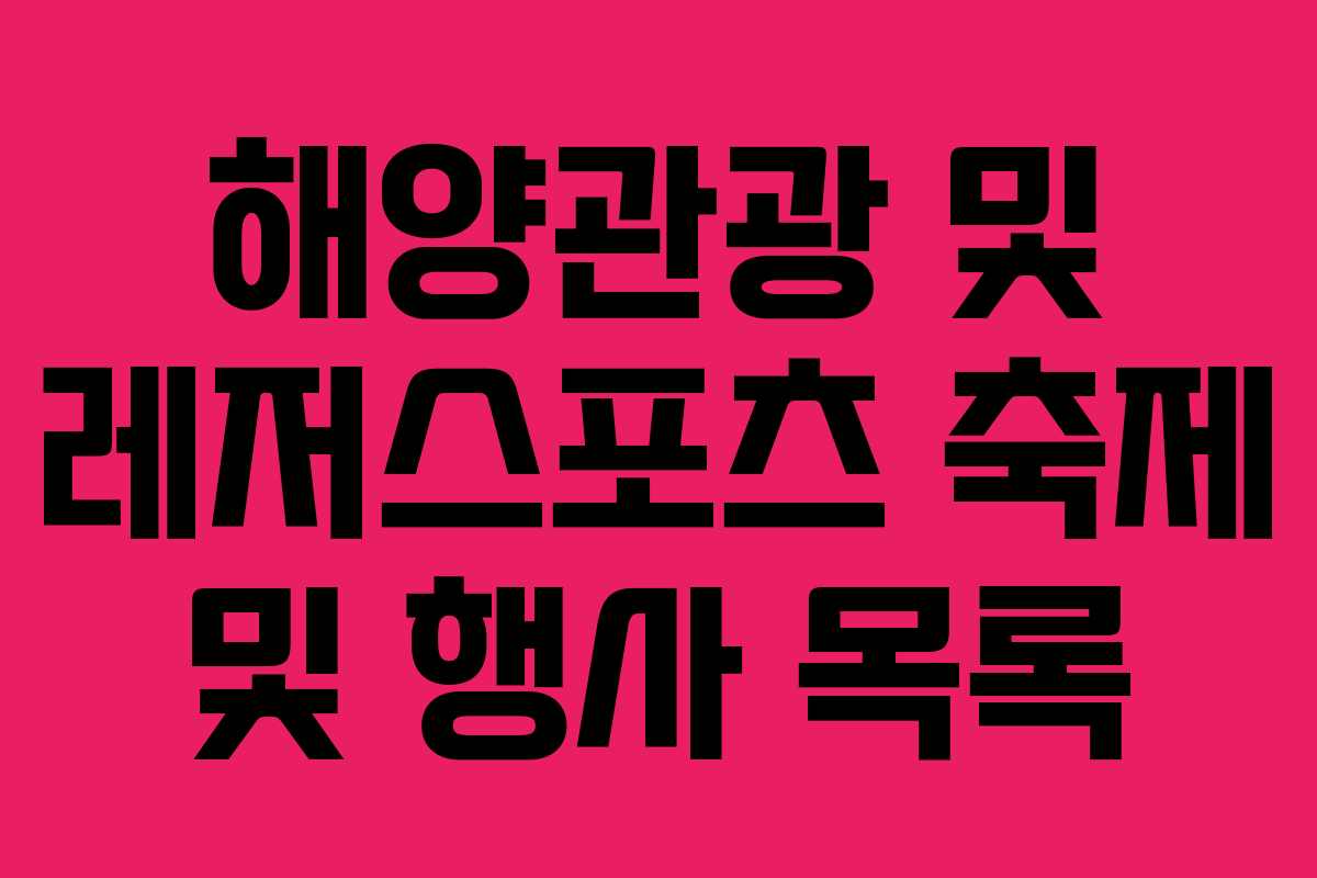 해양관광과 레저스포츠는 한국에서 다양한 축제와 행사로 활기를 띠고 있습니다. 이 글에서는 지역별로 진행되는 주요 해양관광 및 레저스포츠 행사 목록을 소개합니다.