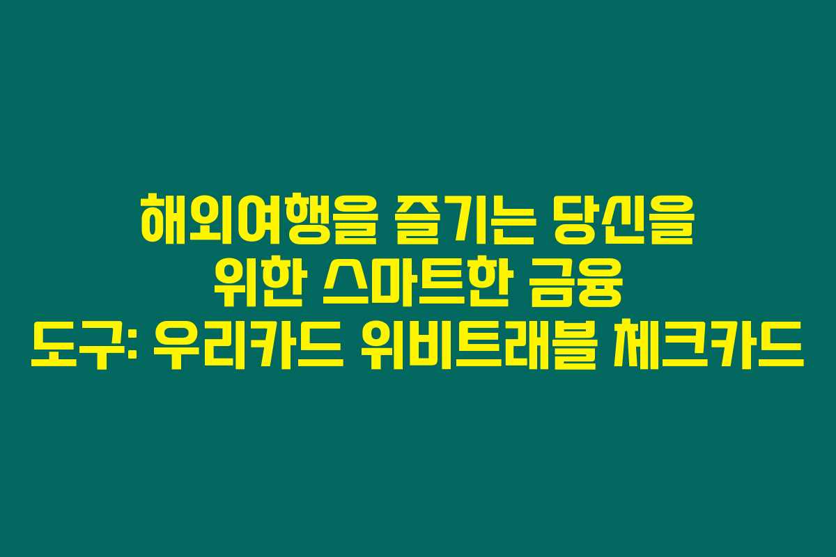 해외여행 계획에 환전 수수료와 해외 결제 수수료 때문에 머리 아픈 경험, 다들 해보셨죠? 우리카드 위비트래블 체크카드가 이런 걱정을 날려줄 완벽한 카드입니다. 아래를 읽어보시면 이 카드의 혜택과 사용법을 통해 여행 경비를 더욱 현명하게 관리하는 방법을 알게 될 거예요.