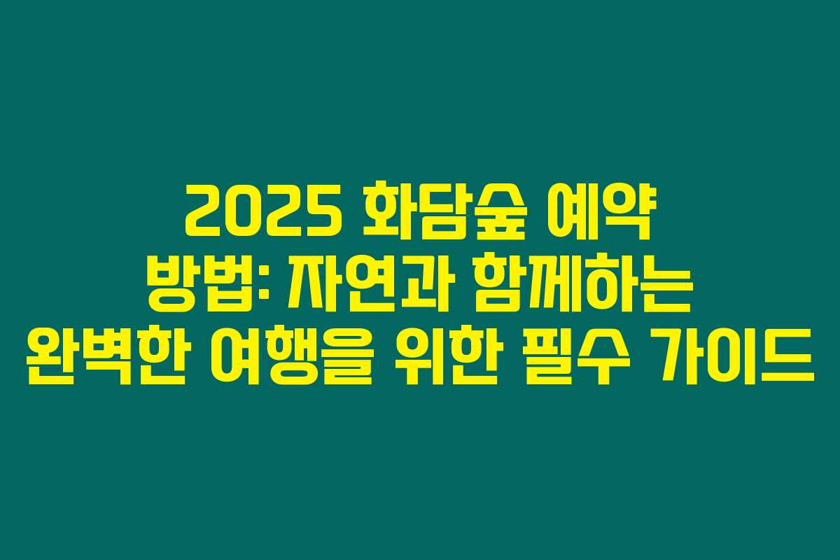 2025 화담숲 예약 방법: 자연과 함께하는 완벽한 여행을 위한 필수 가이드