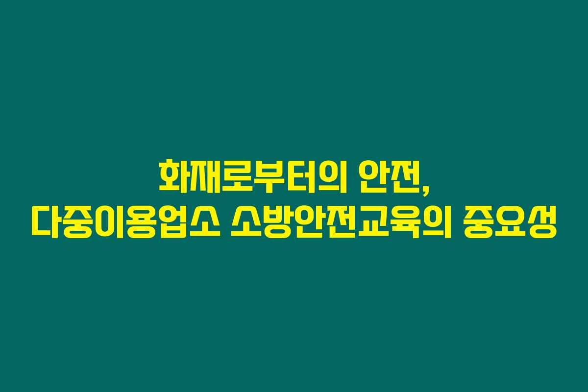 화재는 언제 어디서 발생할지 알 수 없는 재난입니다. 특히 많은 사람들이 오가는 다중이용업소에서는 그 피해가 더욱 심각할 수 있습니다. 그런 만큼 다중이용업소에서의 소방안전교육은 필수적이에요. 아래를 읽어보시면, 이 교육의 중요성과 과정, 그리고 교육을 통해 확보할 수 있는 안전한 환경에 대해 알아보실 수 있습니다.