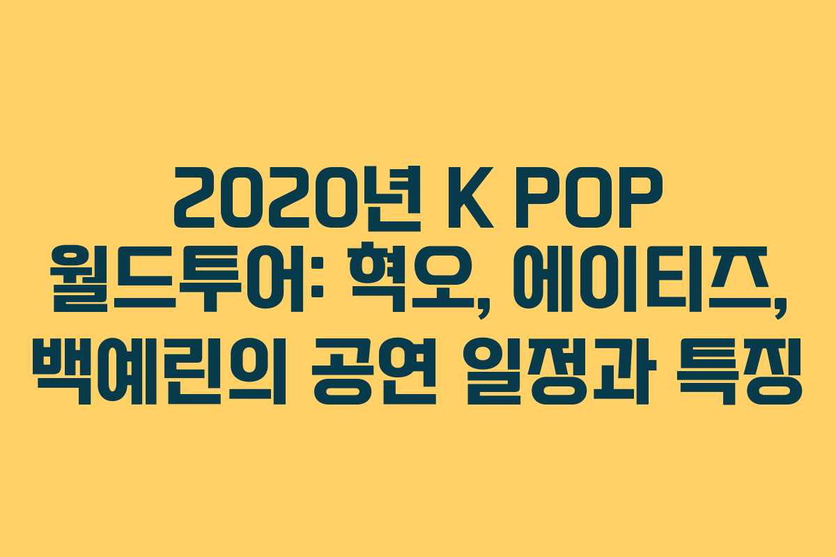 2020년은 K-POP 아티스트들이 전 세계 팬들과 소통하는 중요한 해입니다. 혁오, 에이티즈, 백예린 등 많은 아티스트들이 월드투어를 통해 팬들과 만날 준비를 하고 있습니다.