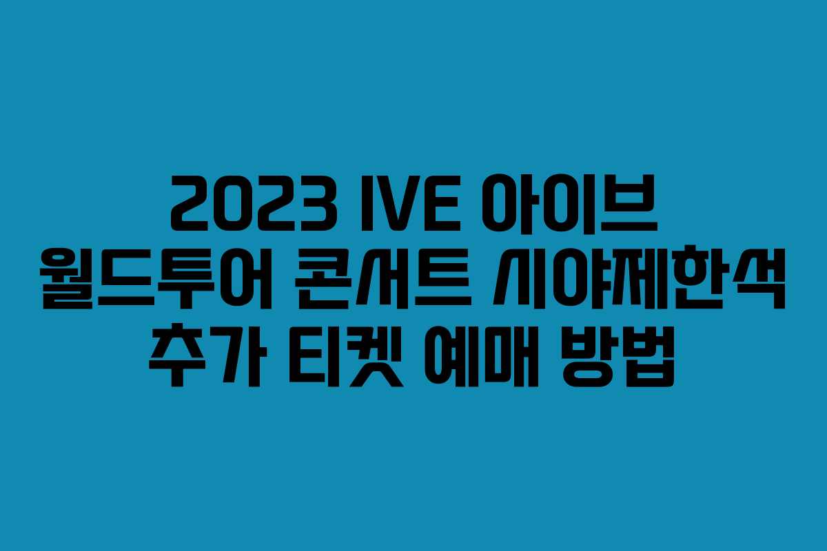 2023년 10월에 열리는 아이브의 월드투어 콘서트가 다가오고 있습니다. 이번 공연에서는 시야제한석이 추가로 오픈되며, 이는 첫 번째 티켓오픈을 놓친 팬들을 위한 기회입니다. 그러나 시야제한석의 특성상 일부 좌석에서 무대가 가려질 수 있다는 점을 유의해야 합니다.