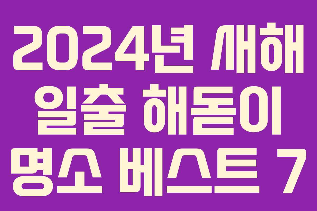 2024년이 다가오며 새해를 맞이하기 위한 준비가 한창입니다. 새해의 시작은 해돋이를 보는 것으로 기념하는 것이 좋습니다. 이번 글에서는 제가 직접 다녀온 국내 일출 명소 7곳을 소개하겠습니다. 새해의 첫날, 아름다운 해돋이를 감상하며 희망찬 한 해를 계획해 보세요.