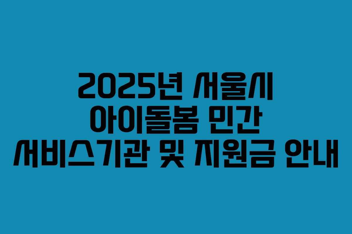 2025년 서울시 아이돌봄 민간 서비스기관 및 지원금 안내