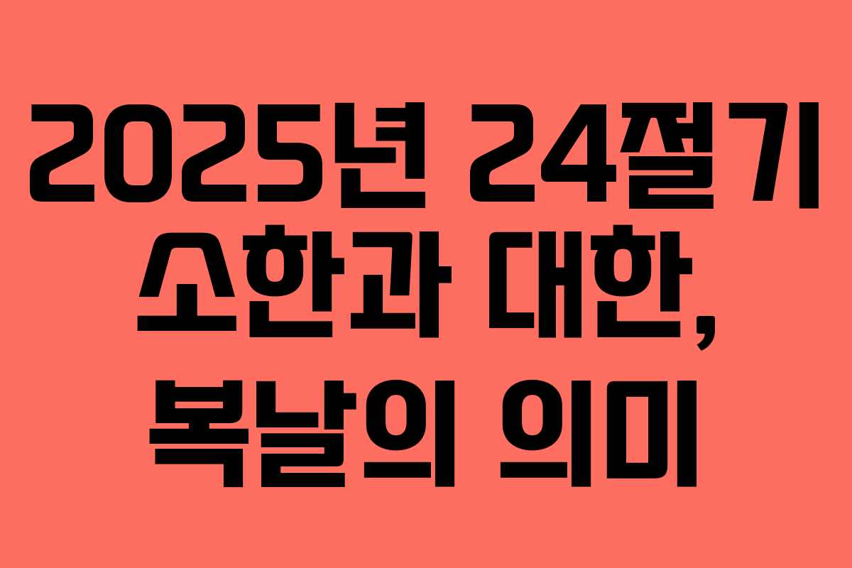 2025년의 시작과 함께 24절기의 중요성을 되새겨보는 시간이 되었습니다. 농업 중심의 우리 문화에서 24절기는 계절의 변화를 반영하여 농사일을 계획하는 데 큰 역할을 해왔습니다. 특히 소한, 대한, 복날은 건강과 관련이 깊어 생활에 유용한 정보를 제공합니다.