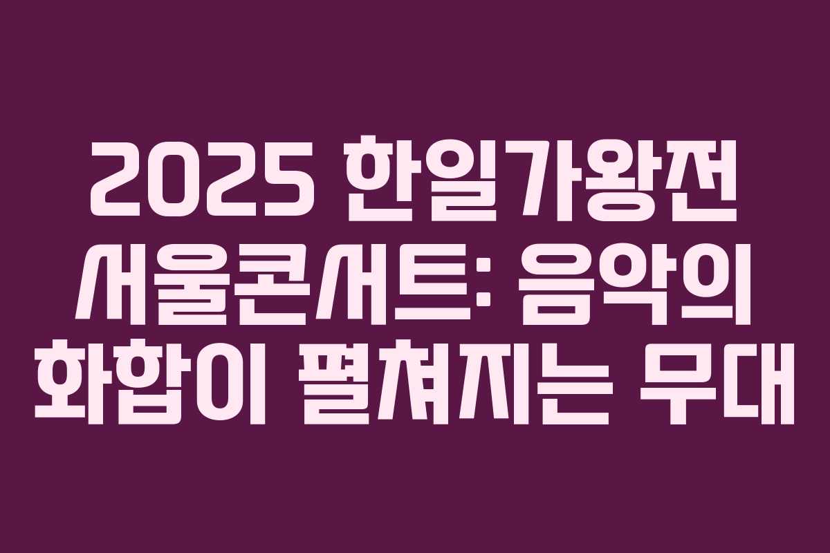 2025 한일가왕전 서울콘서트는 단순한 음악을 넘어 문화적 경험과 감동을 제공하는 특별한 자리입니다. 여러분의 많은 관심과 참여를 기대합니다.