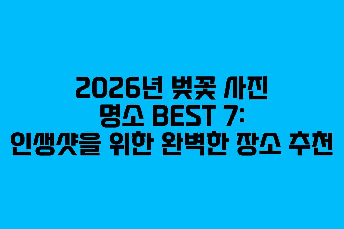 2026년 봄, 한국 전역에서 만개하는 벚꽃을 배경으로 멋진 사진을 찍고 싶다면 최고의 명소를 찾아야 합니다. 이번 글에서는 2026년 벚꽃 시즌에 꼭 방문해야 할 사진 촬영에 적합한 7곳을 소개합니다. 각 명소의 특징, 장점, 단점을 통해 여러분의 벚꽃 구경을 더욱 특별하게 만들어줄 장소들을 살펴보겠습니다.