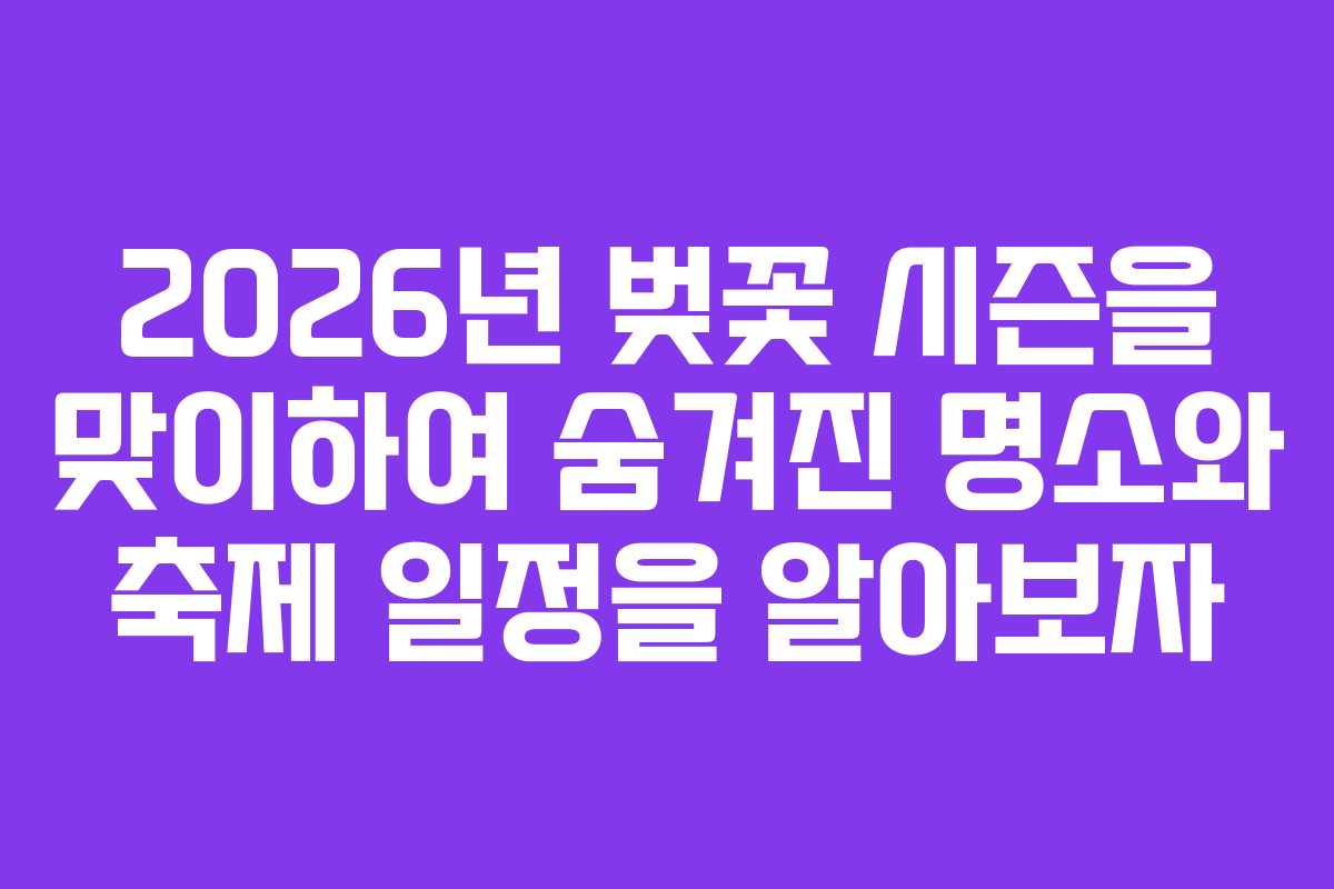 2026년 벚꽃 시즌의 특별한 일정과 장소를 소개합니다. 여러분의 벚꽃 여행을 계획하는 데 유용한 정보가 될 것입니다.