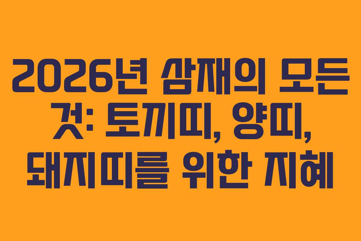 2026년은 삼재가 본격화되는 해로, 많은 사람들이 이 시기에 대해 관심을 가지게 됩니다. 특히 어떤 띠가 삼재에 해당하는지, 그 시기가 어떤 의미를 가지는지 알아보는 것은 중요합니다. 이번 글에서는 삼재의 개념과 2026년의 특징, 그리고 그에 대한 대응 방법에 대해 자세히 살펴보겠습니다.