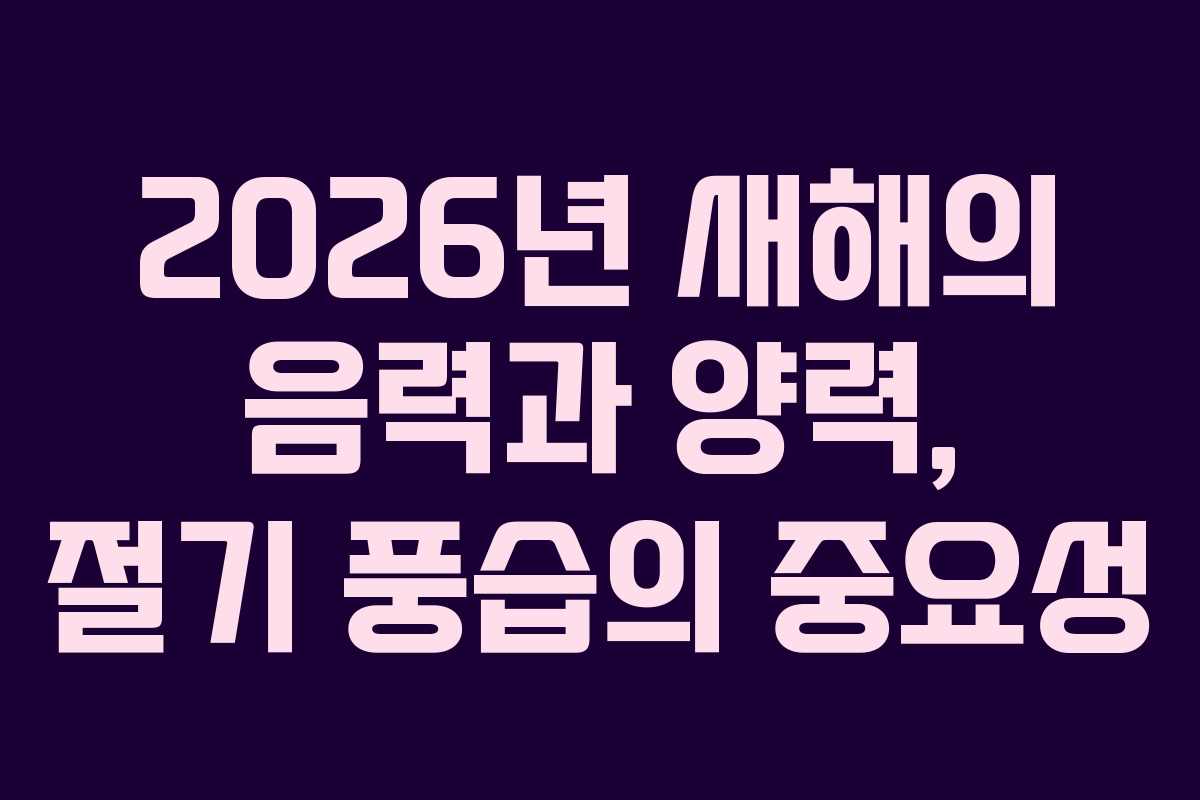 2026년을 준비하면서 음력과 양력, 절기와 김장 문화에 대한 이해를 통해 보다 풍요롭고 의미 있는 한 해를 맞이할 수 있을 것이다.