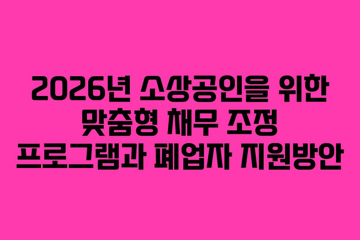 2026년에는 소상공인의 재정적 어려움을 해결하기 위한 다양한 금융 지원 프로그램이 시행됩니다. 이러한 프로그램들은 소상공인들에게 채무 부담을 덜어주고, 연체를 방지하며, 재정적인 회복을 돕는 데 중점을 두고 있습니다. 특히, 맞춤형 채무 조정 프로그램(119 Plus)과 폐업자 저금리·장기 분할상환 프로그램은 소상공인들에게 실질적인 도움이 될 수 있는 방안으로 주목받고 있습니다.